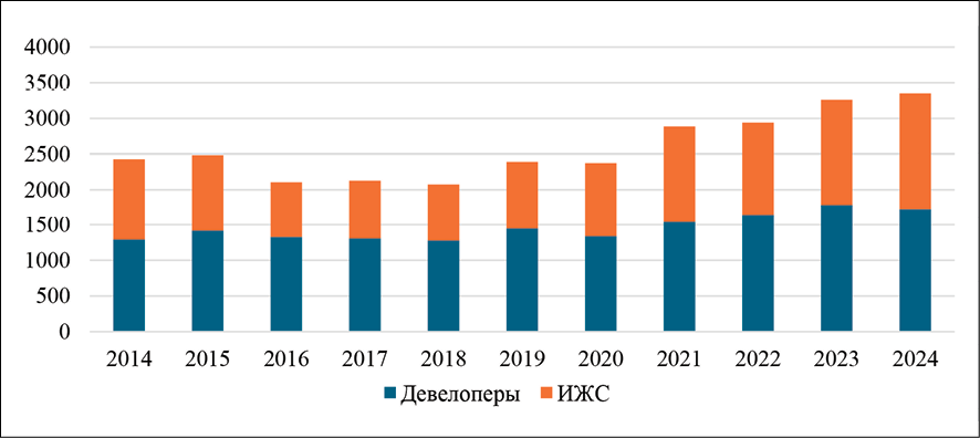 Источник: составлено авторами на основе: Официальный сайт Федеральной службы государственной статистики. Строительство. [Электронный ресурс]. URL: https://rosstat.gov.ru/folder/14458 (дата обращения: 13.03.2025).