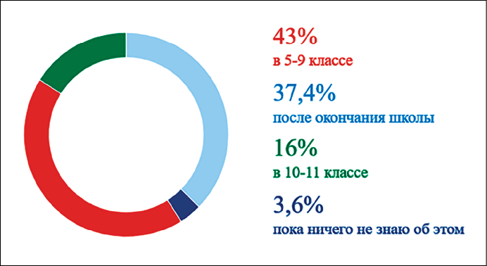 ‒ после окончания школы – 387 чел., или 37,4 % респондентов.