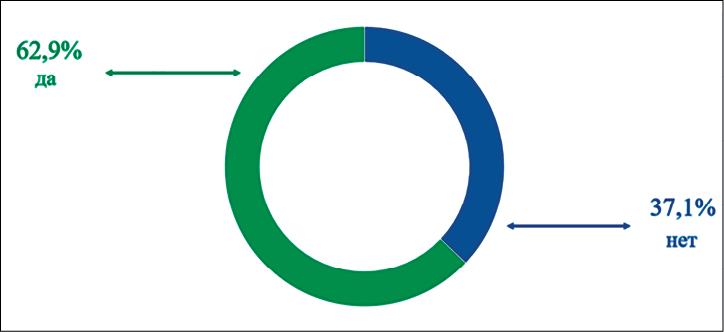 Личный опыт и окружение. Как показало проведенное исследование (получен и обработан 1035 ответ), у подавляющего большинства респондентов статус самозанятого отсутствует (873 чел., что составляет 84,3 % опрошенных). Лишь 162 чел. являлись на момент опроса самозанятыми (15,7 %), при этом в ближайшем окружении этот статус имеют 650 чел. (62,9 % принявших участие в анкетировании). Результаты подтверждают распространенность этой формы занятости и возможность получения респондентами информации из первых рук (рис. 2).