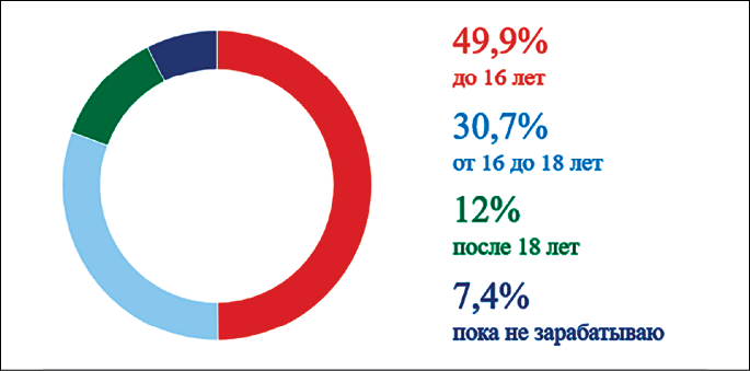 Рис. 3. Данные анкетирования при ответе на вопрос «В каком возрасте вы заработали первые деньги?»
