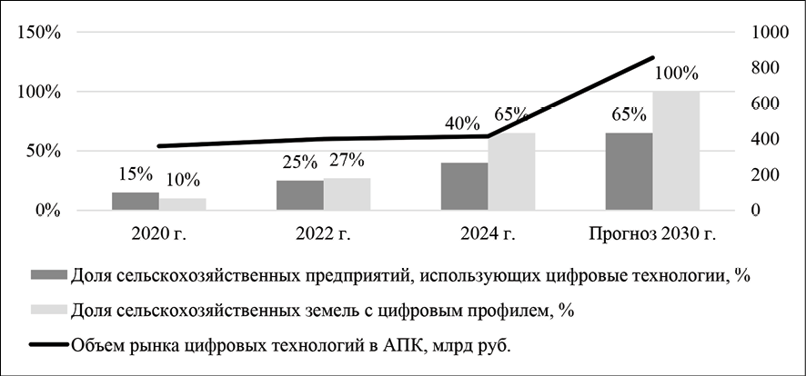 Рис. 1. Динамика процесса цифровизации АПК в РФ Источник: составлено автором на основе: URL: ВШЭ_Цифровая-экономика_2025.pdf (дата обращения: 22.09.2025)