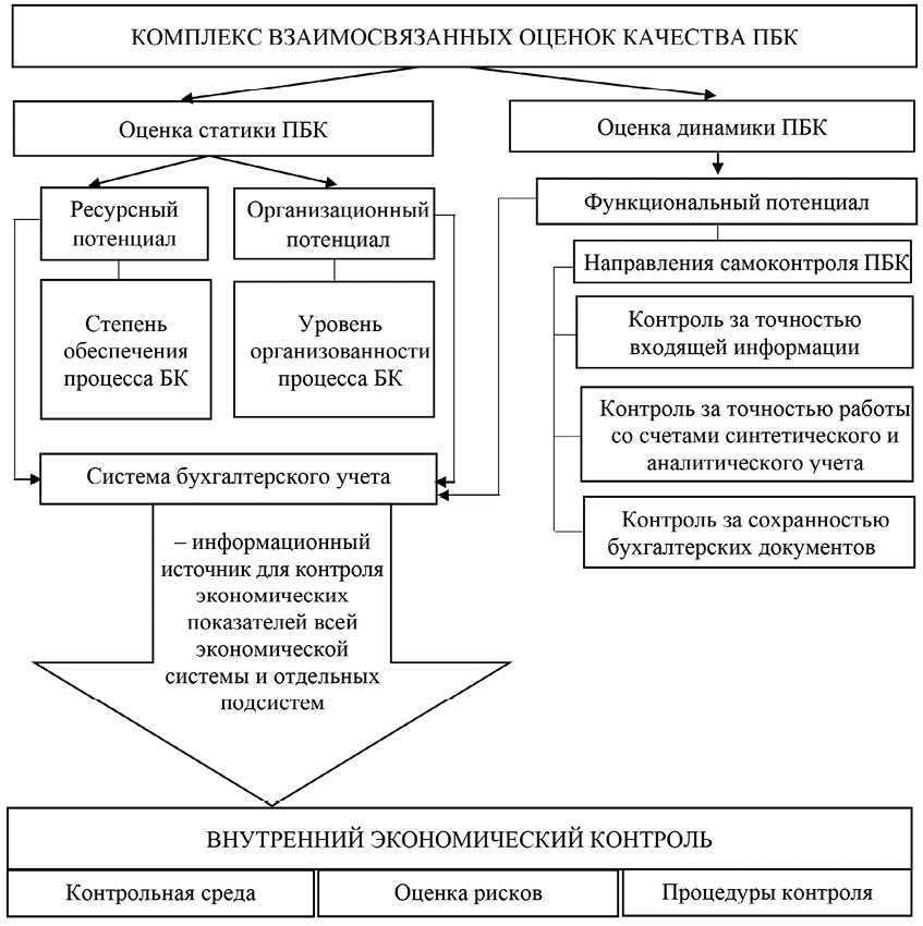 Цель функционирования ПБК является составляющей цели всей СВК на предприятии. Оценка качества ПБК является средством достижения цели (целей) бухгалтерского контроля, всей СВК. В таком случае не имеет принципиального значения, кто именно является субъектом оценивания: субъект внутри предприятия (руководитель предприятия, руководители структурных подразделений предприятия, в том числе главный бухгалтер, внутренние аудиторы) или аудиторская фирма, аудитор. Главное, что процесс оценивания, прежде всего, должен рассматриваться как средство усовершенствования СВК и его подсистем, а результаты процесса оценивания становятся основой для организации и осуществления аудиторских процедур, для достижения цели аудита.
