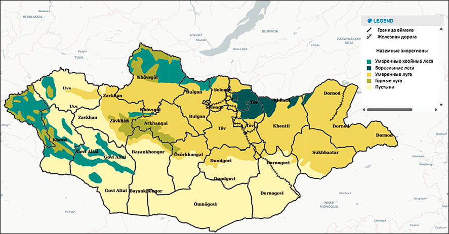 Рис. 2. Наземные экосистемы Монголии Источник: составлено по данным [10]