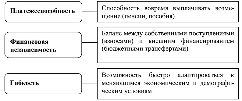 Международные стандарты выделяют три ключевых аспекта устойчивости систем социального страхования (рисунок).