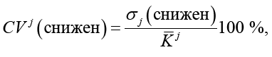 Коэффициент вариации для полудисперсии CVj(снижен), % |