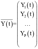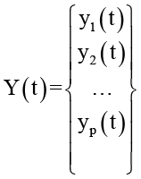 Состояние выходов системы во времени представим в виде многомерного вектора Y(t), где Y(t) – вектор выхода экономической системы размерности Р, который содержит параметры (показатели) состояния объекта, доступные для наблюдения: